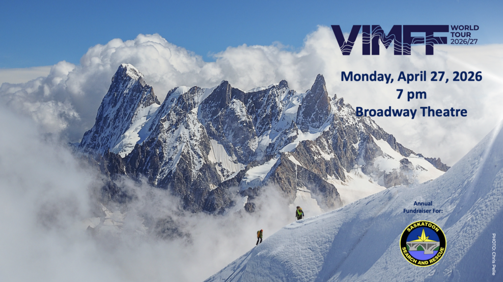 Saskatoon Search and Rescue (SSAR) is hosting the Vancouver International Mountain Film Festival (VIMFF) tour on April 27, 2026, at 7 pm at the Broadway Theatre and we invite you to attend. We’ve got an excellent lineup of films that feature inspiring outdoor adventures, mountain culture, and environmental initiatives!Tickets sold out well in advance last year so get yours before they’re gone!